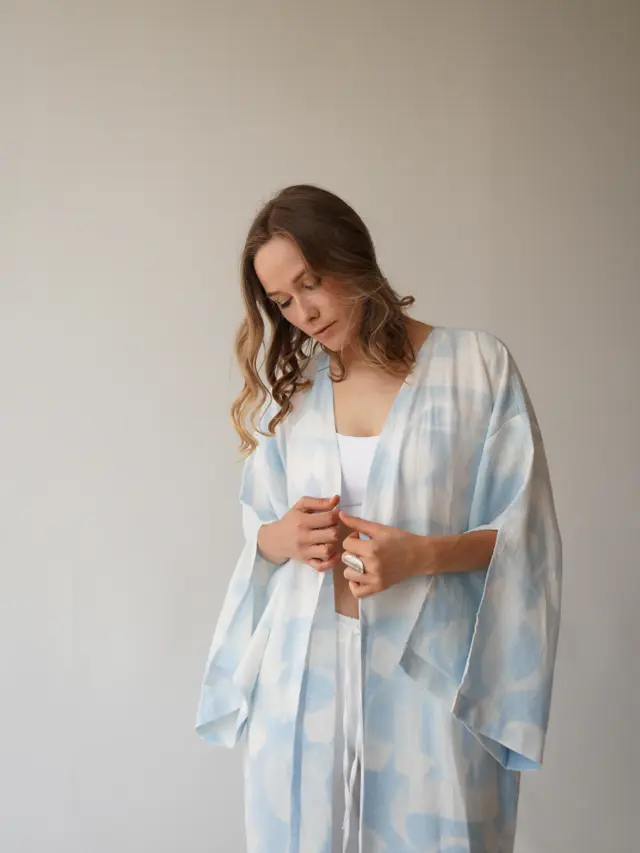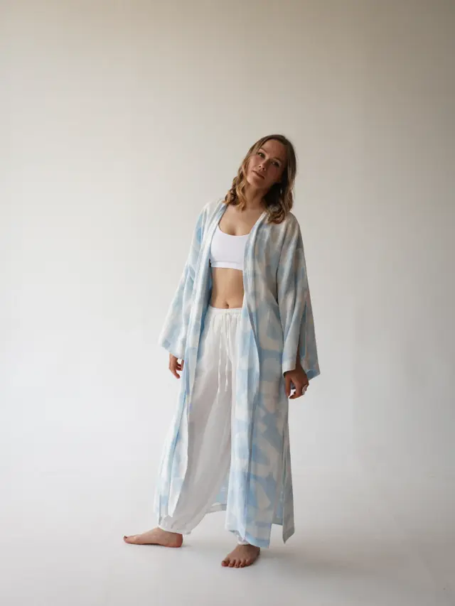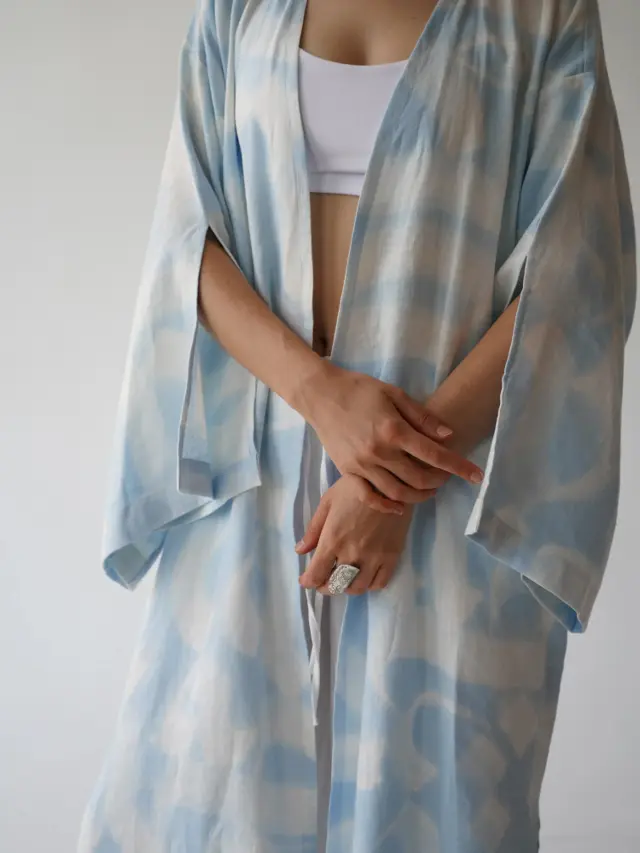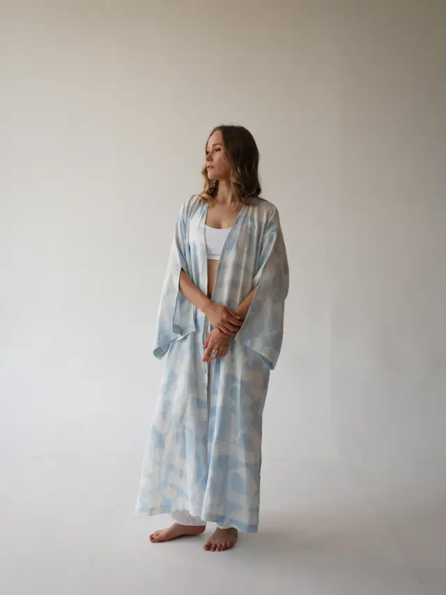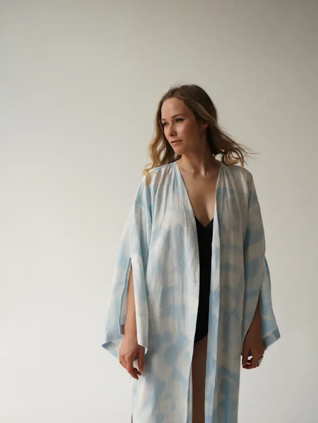 Hand-painted linen kimono