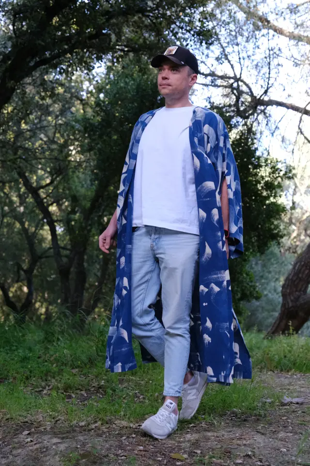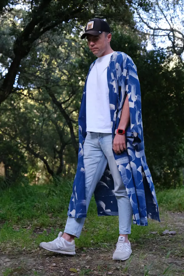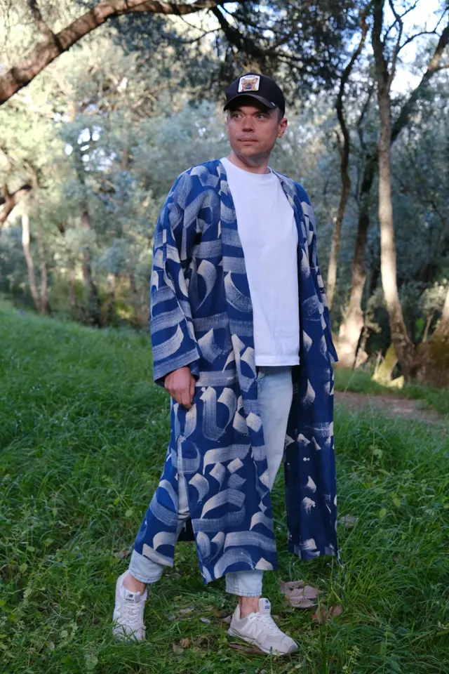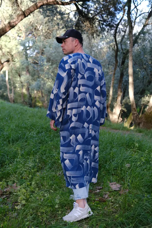 Единый размер (one size). Крой и пропорции задуманы так, чтобы кимоно гармонично смотрелось на рост примерно от 160 до 185 см.